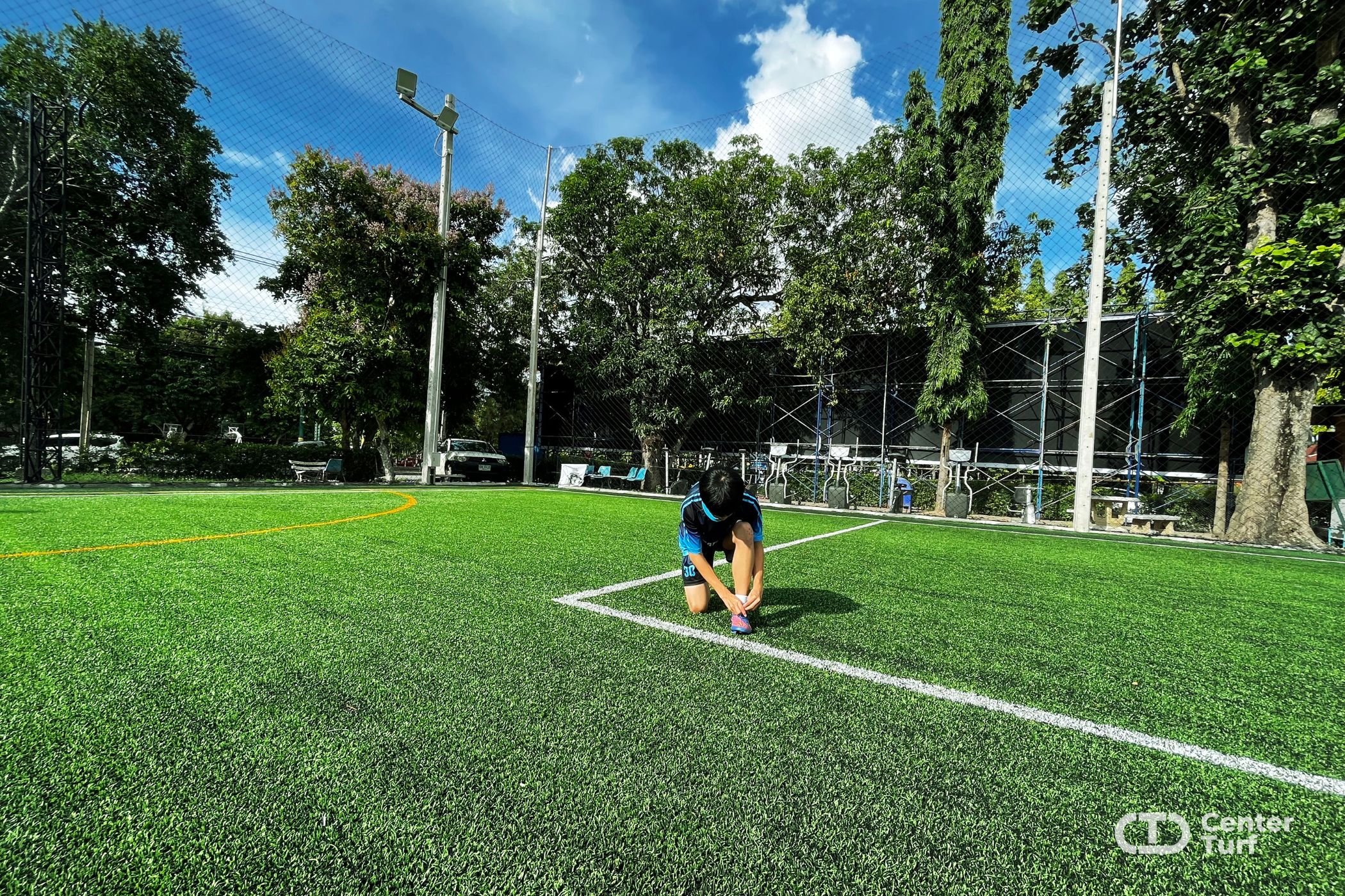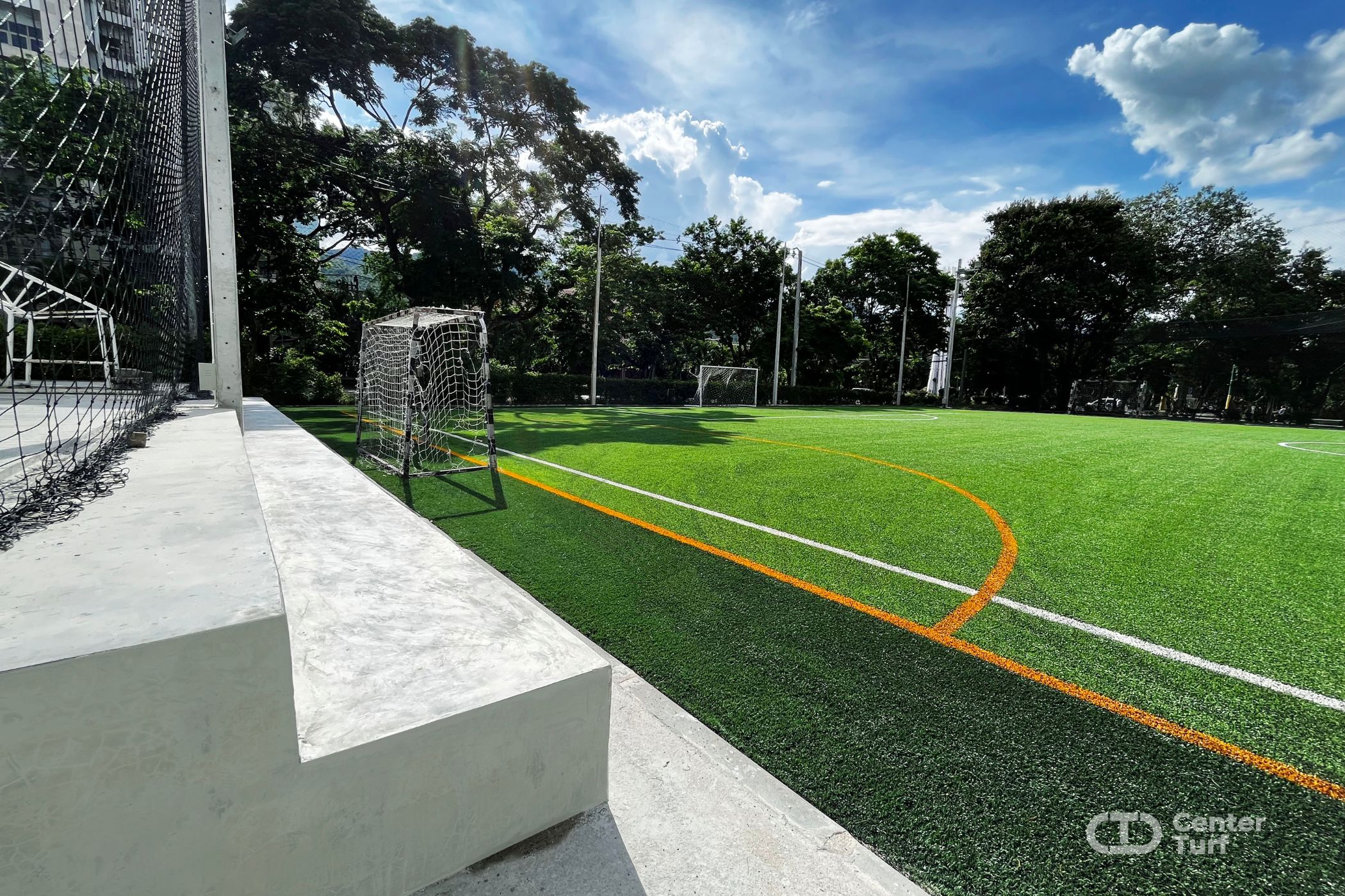 งานสร้างสนามฟุตบอลหญ้าเทียมโดยทางโรงเรียนเลือกใช้หญ้าเทียมเกรดพรีเมี่ยมความสูง 50 มม.