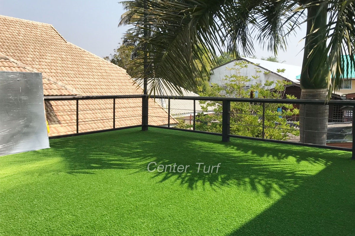 หญ้าเทียมตกแต่งระเบียงร้านกาแฟ จ.ลำปาง