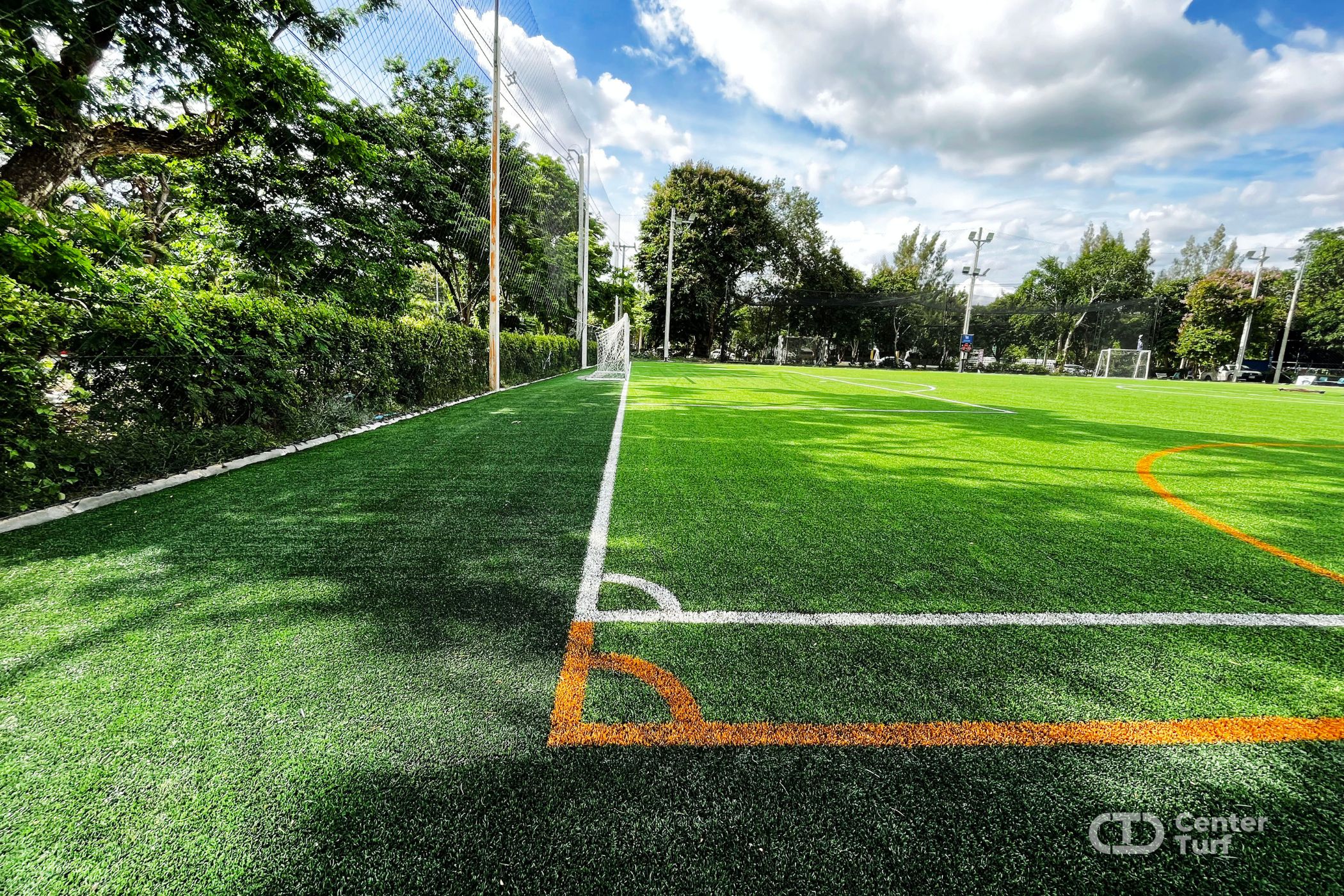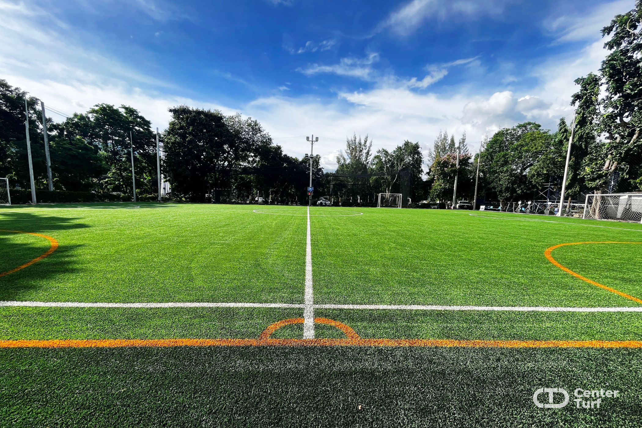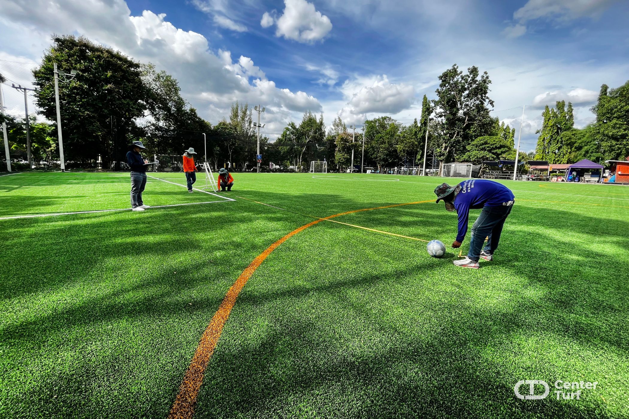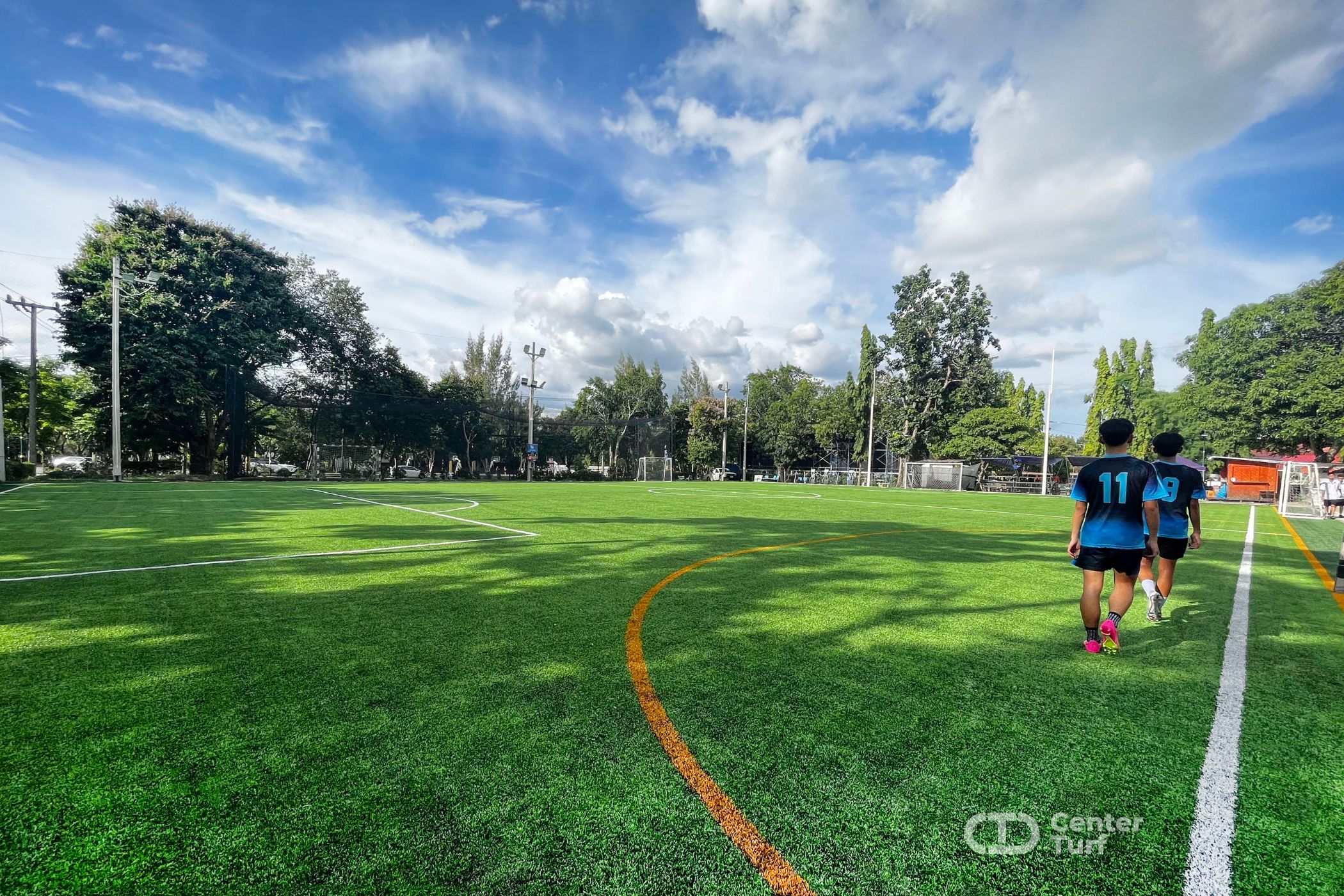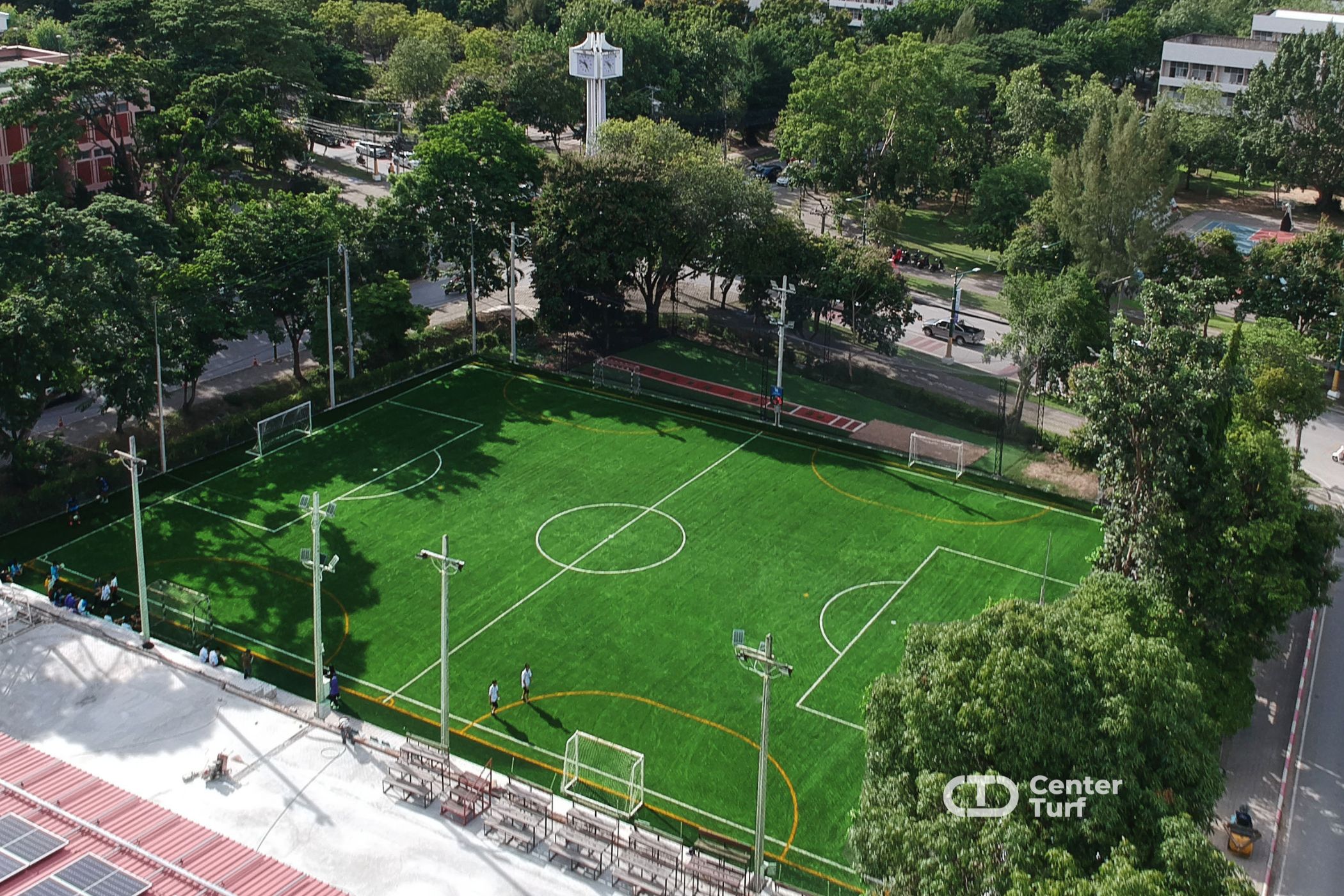 งานสร้างสนามฟุตบอลหญ้าเทียมโดยทางโรงเรียนเลือกใช้หญ้าเทียมเกรดพรีเมี่ยมความสูง 50 มม.